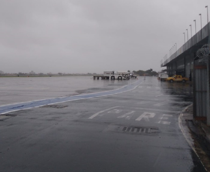 O Aeroporto Internacional de Navegantes registrou quatro voos atrasados nesta terça-feira (20). Além das chuvas, o aeroporto enfrenta uma paralisação de pilotos e comissários.