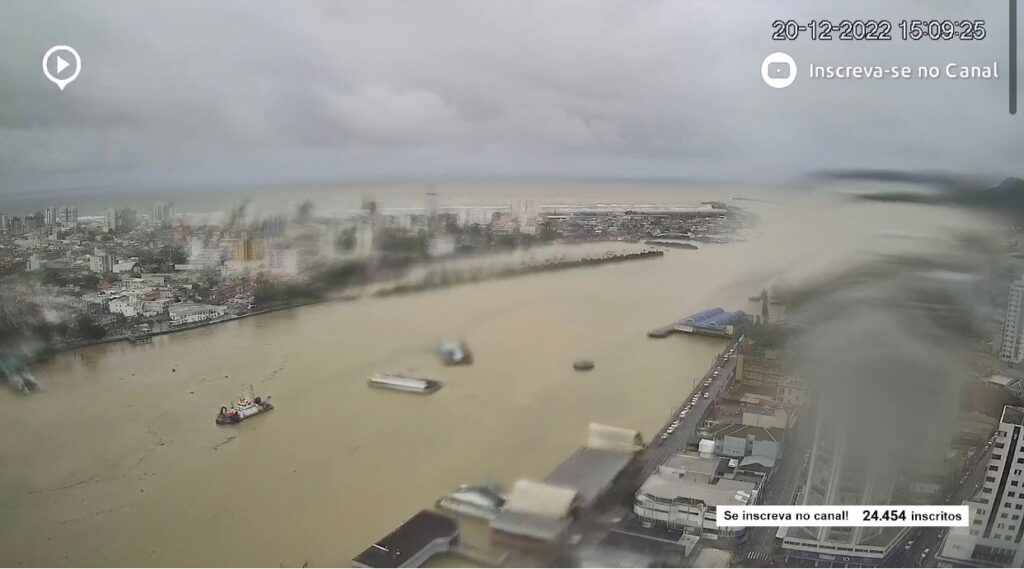 As chuvas desta terça-feira (20) também afetam os portos de Itajaí e Navegantes, no Litoral Norte de Santa Catarina. Segundo a praticagem, o canal de acesso aos portos está inacessível.